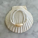 One rare mother of pearl piece set with glossy glass beads, natural shells finished with two pearls